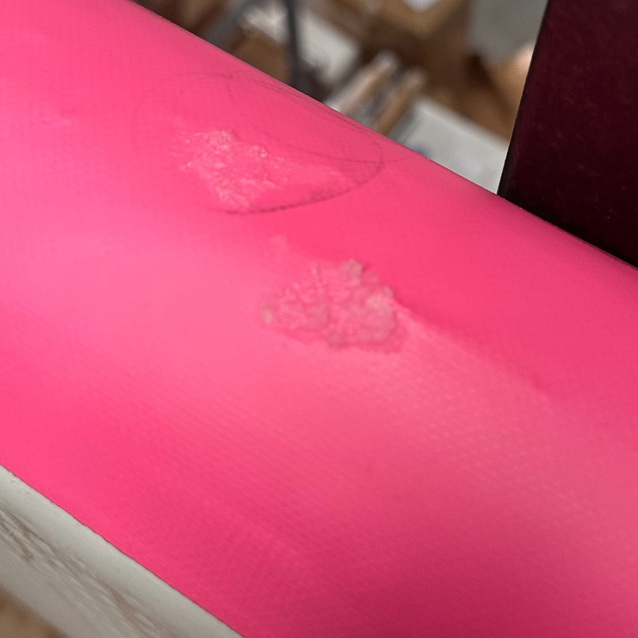 This 3m x 1m x 10cm Cannons UK Air Track Pro (Pink) has been professionally repaired along the side wall (twice as displayed in images) using our new high-quality glue, eliminating the need for a patch. These two areas are extremely small and are not easy to notice at first glance.